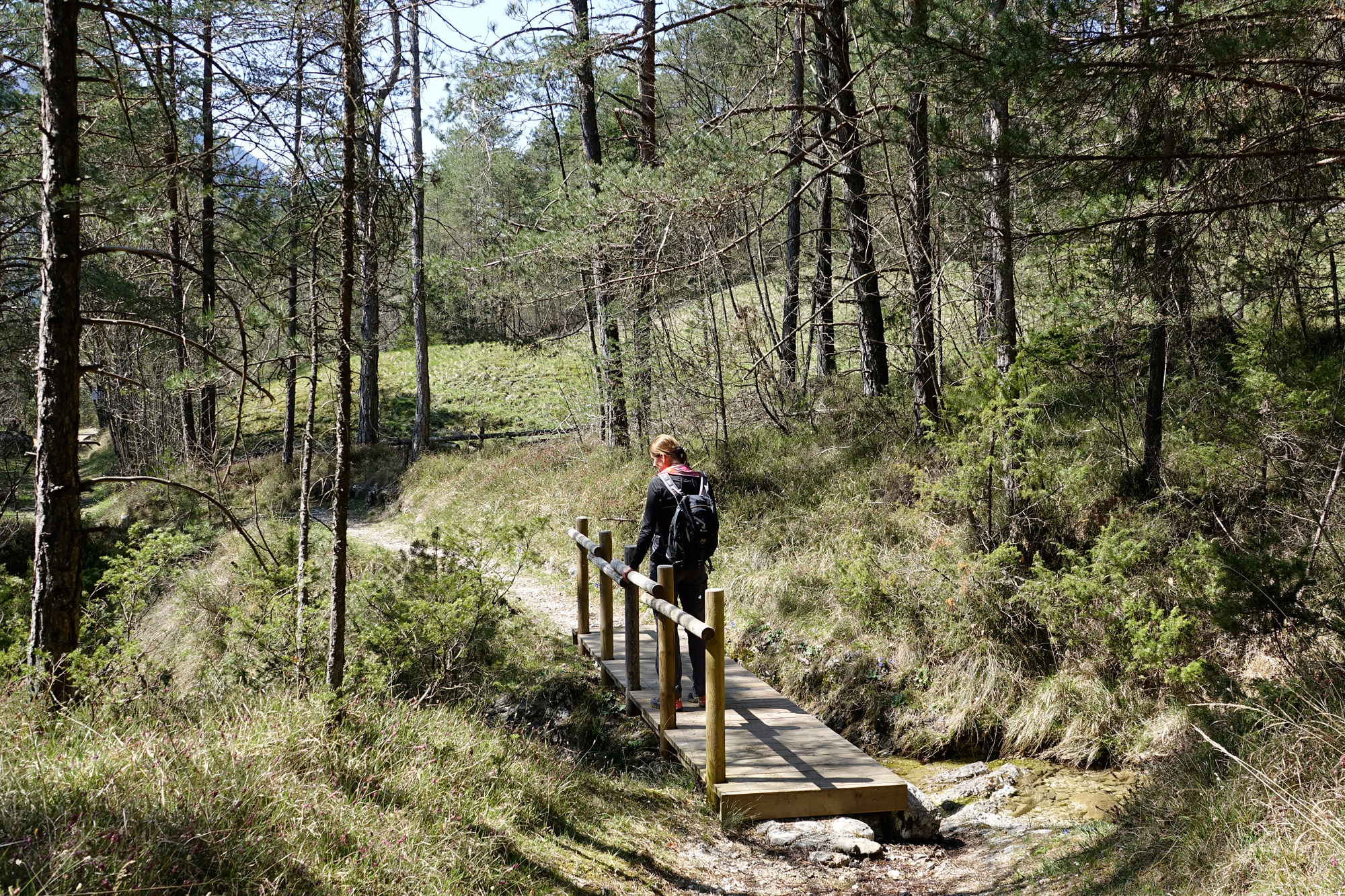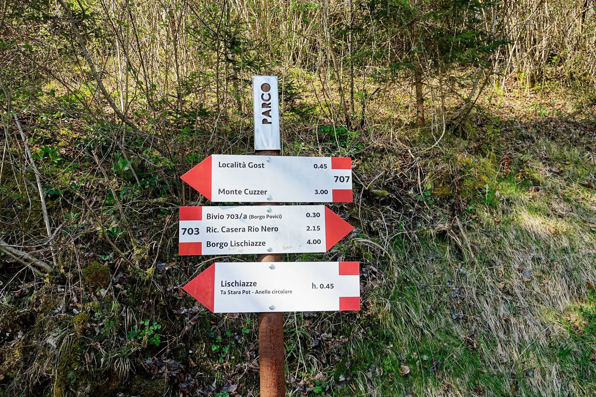 Začetek poti je v Ravanci pred cerkvijo, kjer je možno brezplačno parkiranje. Pot je precej zgledno označena, a vseeno je potrebno biti na oznake kar pozoren, da ne »pičiš« mimo kakšnega odcepa, kot sva to očitno storila midva. Potem, ko sva prečkala most prek reke Rezije, kjer je tudi izhodišče za Kucer, sva se usmerila proti zaselku Liščace. Po krasni stezi sva hodila, lepo uhojena je bila, midva sva nepopisno uživala, niti pomislila nisva, da bi morala kaj posebej gledati za smernimi tablicami, a kar naenkrat sva se znašla na točki, ko poti naprej ni bilo več. Jaz sem predlagala, da se vrneva in poiščeva odcep, ki da je zagotovo označen, le spregledala sva ga, moj dragi pa je očitno na vsak način želel dati na »preizkušnjo« svoj smisel za orientacijo rekoč, da »po njegovo morava samo tjale gor na greben in na drugi strani naju zagotovo čaka označena potka«. Ko sem ga vprašala, kako to ve, mi je odvrnil, da sva pa ja bila v teh koncih že tolikokrat, da je prepričan, da ima prav. In sva zagrizla v strmino. Prisežem, da se mi je zdelo, da je tu potka nekoč celo bila (morda pa sva hodila po še starejši poti kot je označena Ta Stara Pot 🙂 ) in onstran grebenske rezi sva v resnici stopila na stezo, ki sva jo dol ob Reziji očitno nekje zgrešila. Meni so se usta razlezla v nasmeh, moj dragi pa ni pokazal nobenega posebnega navdušenja, češ, »itak sem vedel«. No, jaz pa vem, da si je sam pri sebi kar oddahnil, ker če potke ne bi bilo, bi znala Gita ratati malo sitna… 🙂 . Kakorkoli, dala sva si »petko« in sproščeno nadaljevala…
